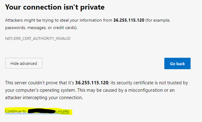 Click Advanced, then continue to the site.